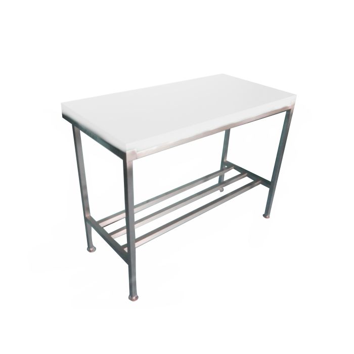 Professional High Density Polyethylene butchers board & heavy duty fully welded stainless steel stand with 3 bar under shelf.