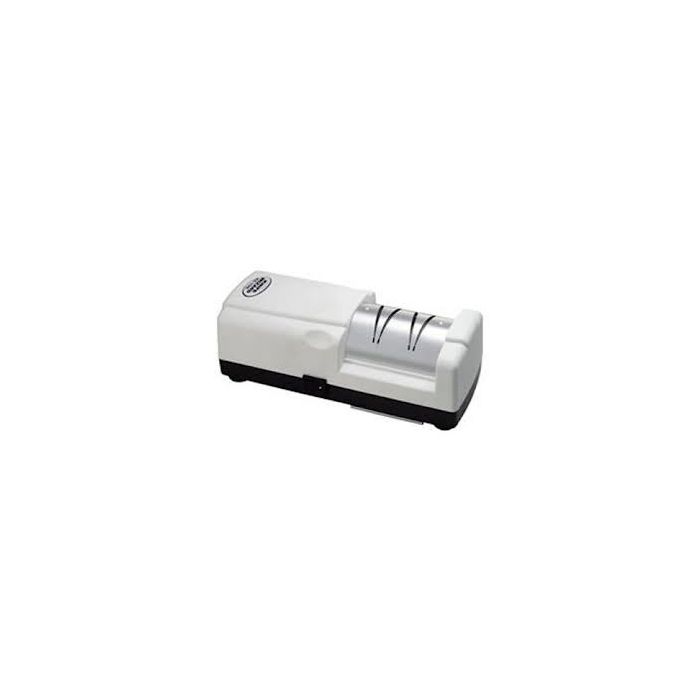 Two spring loaded grinding wheels (coarse & fine) apply controlled pressure to the knife blade.